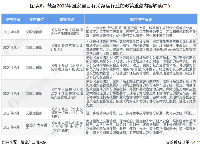 “十四五”时期,我国海运行业要紧紧围绕“立足新发展阶段、贯彻新发展理念、构建新发展格局”要求,对标“四个一流”,以国家高等级航道和主要港口为主体,重点在“补齐短板、促进融合、提升服务、强化创新、绿色转型、深化改革”上下功夫。截至2023年我国海运行业重点政策如下: