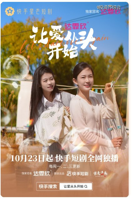 第二,快手短剧以头部达人、流量保障,打造爆款好剧。达霏欣则是通过联手快手短剧“超头部达人”,聚焦短剧用户核心偏好,定制共创爆款短剧《让爱从头开始》,达成声量借势和口碑塑造,打造大健康行业爆款商业案例。