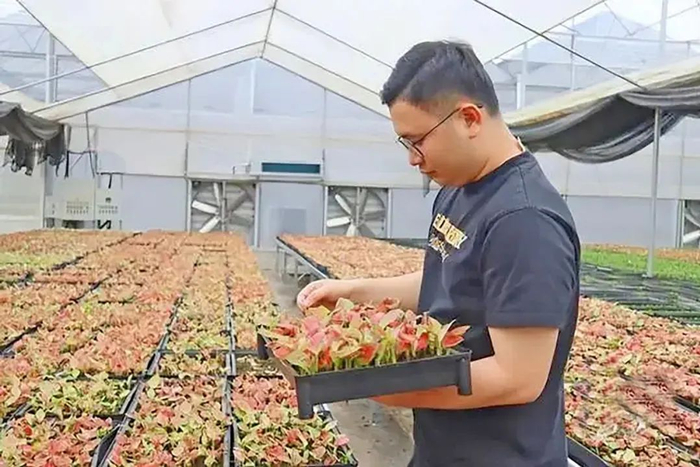 “尽管对于花卉种植不是很了解,但随着人们生活水平的提升,对花卉的需求越来越高了,再加上自己是‘农三代’,自小便参与到家中的农业生产当中,对于发展该行业还是很有信心的。”谢卓志对于农业的信心和情怀驱动他回到家乡开拓花卉产业,凭着对于一线种植和花卉市场的长期观察,他逐渐对各式花卉品类和特点了然于心。