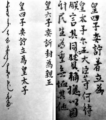 根据中国第一历史档案馆藏道光帝秘密立储档案,道光二十六年(1846)六月十六日,道光帝用满汉文朱笔御书“皇四子奕詝立为皇太子”,又用汉文朱笔御书“皇六子奕訢封为亲王”;道光三十年(1850)正月十四日,道光帝临终前朱谕“皇四子奕詝立着为皇太子,尔王大臣等何待朕言,其同心赞辅,总以国计民生为重,无恤其他”。另据《清史稿》载:道光帝在临终前,召王公重臣进殿,命人打开立储密诏的匣子,当众宣布奕詝为皇太子。即日,道光帝在圆明园慎德堂驾崩,奕詝继位,年号咸丰。本版图片 周乾 提供