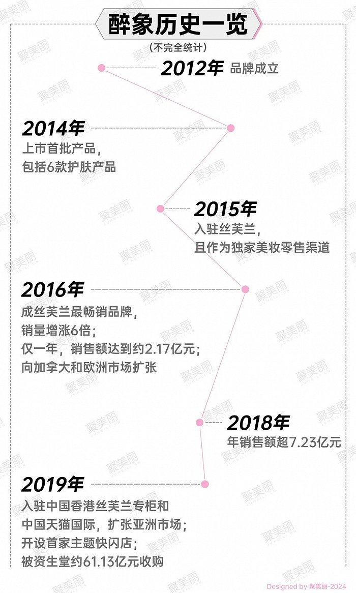 醉象一经上市业绩暴涨,仅入驻丝芙兰一年便是最畅销品牌之一,2018年销售额便超1亿美元(约合人民币7.23亿元),品牌估值达10亿美元(约合人民币72.36亿元)。