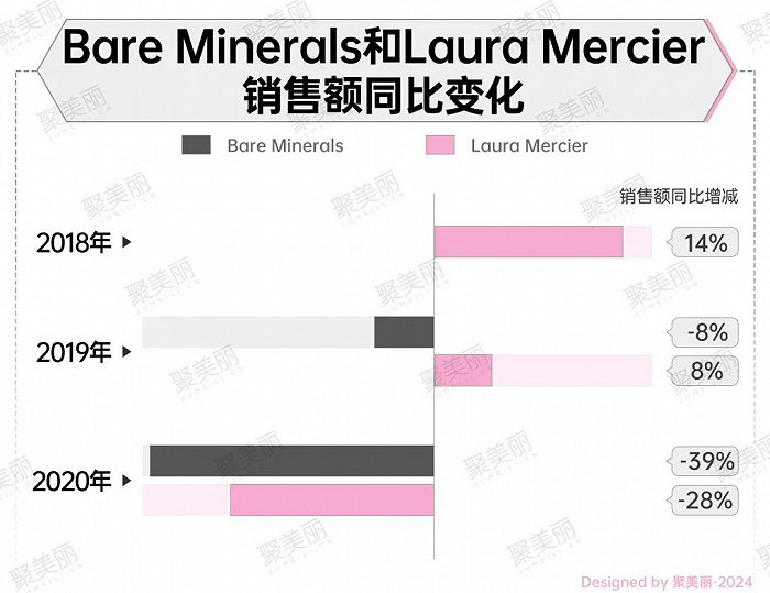 2020年后,Bare Minerals美国市场的收入暴跌25.7%,2019年-2020年销售额分别减少8%和39%。