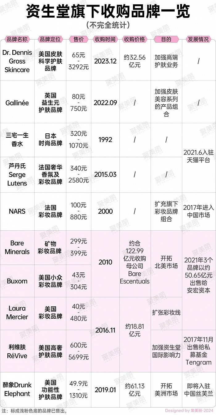 如今,这些品牌境遇各不相同,有些低迷被售,而有些为资生堂增资增产。