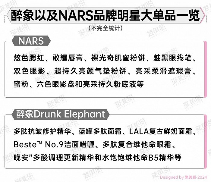 2023年财报显示,被收购的NARS和醉象(注:英文名为Drunk Elephant)已是被重点列出的主力品牌。