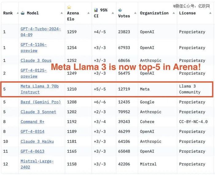 而Meta首席人工智能科学家杨立昆则在推特上分享,Llama-3在Arena排行榜中已经位居第五。