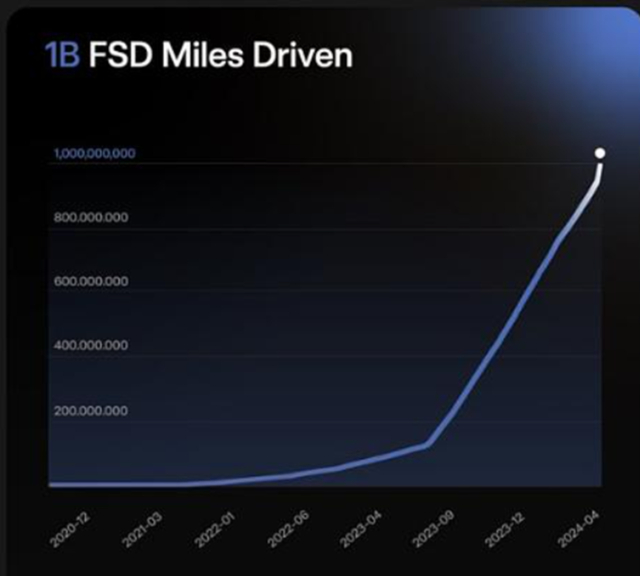 截至今年4月初,特斯拉的FSD行驶里程数已尽超过10亿英里,已经从测试版本更新至监督版。