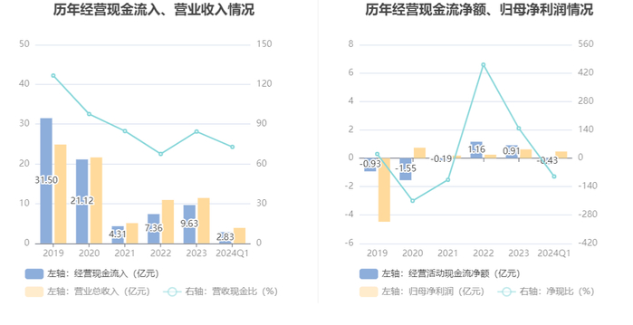 2024年第一季度,公司营业收入现金比为72.79%,净现比为-90.49%。