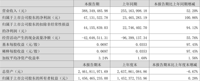 中证智能财讯 云鼎科技(000409)4月25日披露2024年一季报。2024年第一季度,公司实现营业总收入3.88亿元,同比增长52.20%;归母净利润4713.15万元,同比增长100.86%;扣非净利润4415.58万元,同比增长94.12%;经营活动产生的现金流量净额为-4264.85万元,上年同期为-9639.91万元;报告期内,云鼎科技基本每股收益为0.0697元,加权平均净资产收益率为3.24%。