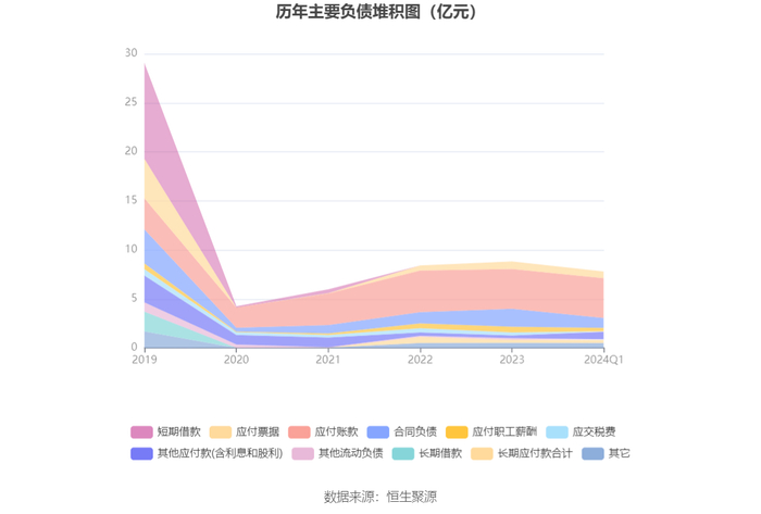 负债重大变化方面,截至2024年一季度末,公司合同负债较上年末减少44.69%,占公司总资产比重下降2.83个百分点;其他应付款(含利息和股利)较上年末增加179.52%,占公司总资产比重上升2.07个百分点;应交税费较上年末减少85.07%,占公司总资产比重下降1.01个百分点;应付职工薪酬较上年末减少41.49%,占公司总资产比重下降0.82个百分点。