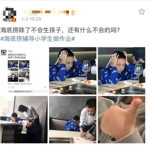 海底捞辅导孩子作业 花式服务也得小心撞线
