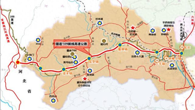 109新线高速公路全长65公里,今年建成后将成为京西地区第一条高速公路。规划显示,这条高速贯通门头沟6个镇,建成后全线行程时间从2小时以上缩短至1小时以内,带动沿线地区经济社会发展。
