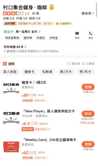 ▲ 村口集合健身咖啡上架各类健身卡和用户评价(图源:大众点评)