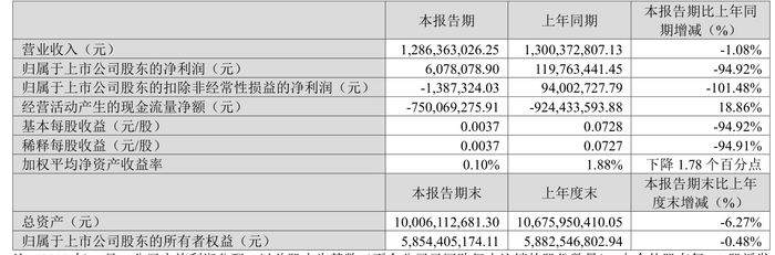 数据显示,2024年第一季度公司加权平均净资产收益率为0.10%,较上年同期下降1.78个百分点;公司2024年第一季度投入资本回报率为0.14%,较上年同期下降1.48个百分点。