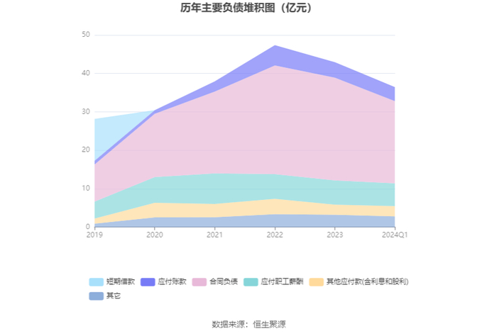 负债重大变化方面,截至2024年一季度末,公司合同负债较上年末减少19.99%,占公司总资产比重下降3.66个百分点;应付账款较上年末减少10.72%,占公司总资产比重下降0.18个百分点;应付职工薪酬较上年末减少6.39%,占公司总资产比重下降0.01个百分点;应交税费较上年末减少34.86%,占公司总资产比重下降0.19个百分点。