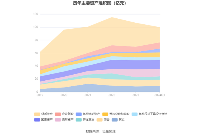 资产重大变化方面,截至2024年一季度末,公司货币资金较上年末减少36.18%,占公司总资产比重下降11.05个百分点;其他流动资产较上年末增加328.06%,占公司总资产比重上升4.61个百分点;应收账款较上年末增加13.24%,占公司总资产比重上升1.64个百分点;发放贷款和垫款较上年末增加14.69%,占公司总资产比重上升1.38个百分点。