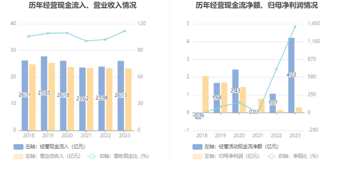 2023年,公司营业收入现金比为112.11%,净现比为1405.51%。