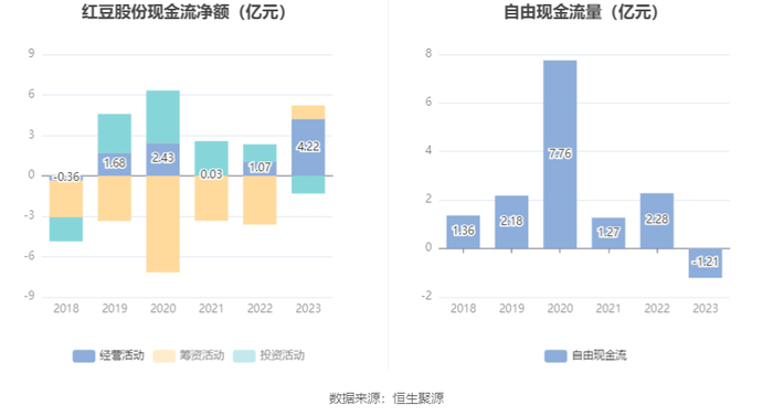 进一步统计发现,2023年公司自由现金流为-1.21亿元,上年同期为2.28亿元。
