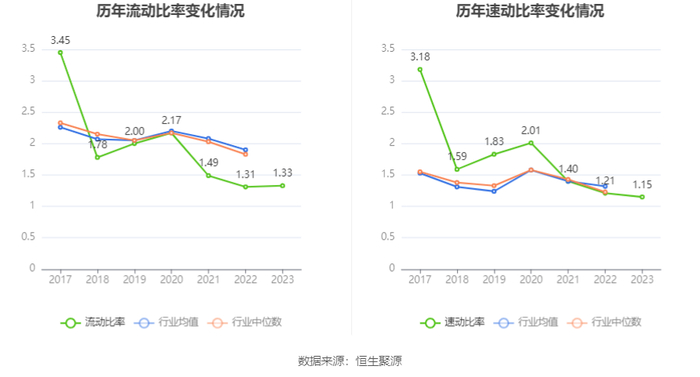 2023年,公司流动比率为1.33,速动比率为1.15。