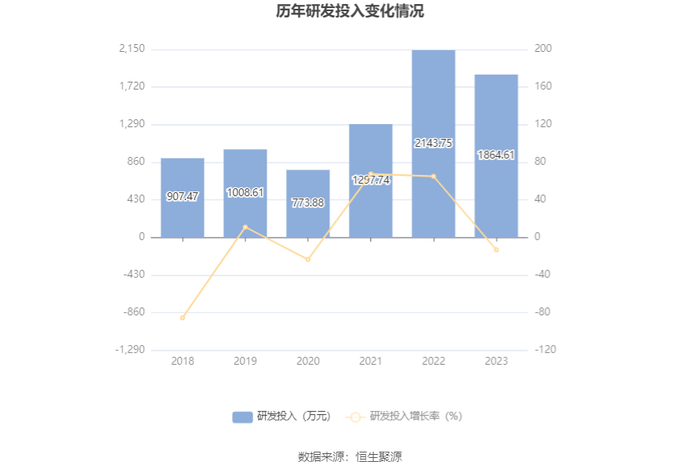 2023年全年,公司研发投入金额为1864.61万元,同比下降13.02%;研发投入占营业收入比例为0.80%,相比上年同期下降0.12个百分点。此外,公司全年研发投入资本化率为0。