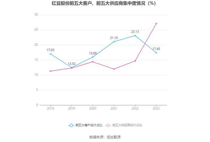 报告期内,公司前五大客户合计销售金额4.07亿元,占总销售金额比例为17.45%,公司前五名供应商合计采购金额4.97亿元,占年度采购总额比例为27.11%。