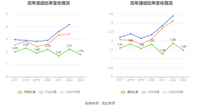 2023年,公司流动比率为1.78,速动比率为1.49。