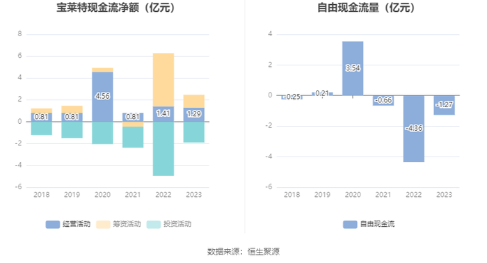 进一步统计发现,2023年公司自由现金流为-1.27亿元,上年同期为-4.36亿元。