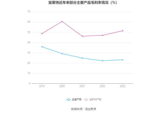 分产品看,血透产品、监护仪产品2023年毛利率分别为23.25%、51.47%。