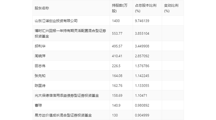 年报显示,2023年年末公司十大流通股东中,新进股东为张先知、陈国诗、曹琼、易方达价值成长混合型证券投资基金,取代了三季度末的香港中央结算有限公司、致远前沿产业5号私募证券投资基金、王忠常、浦银安盛品质优选混合型证券投资基金。在具体持股比例上,博时汇兴回报一年持有期灵活配置混合型证券投资基金、邱利华、周晓萍持股有所上升,田志伟、光大保德信信用添益债券型证券投资基金持股有所下降。