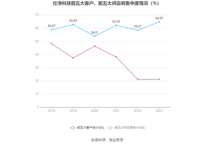 报告期内,公司前五大客户合计销售金额22.36亿元,占总销售金额比例为64.95%,公司前五名供应商合计采购金额8.43亿元,占年度采购总额比例为21.27%。