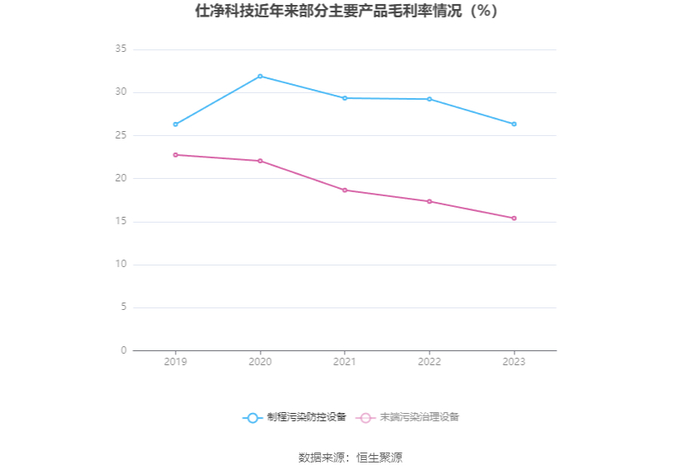 分产品看,制程污染防控设备、末端污染治理设备2023年毛利率分别为26.33%、15.39%。