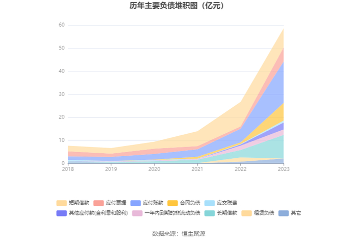负债重大变化方面,截至2023年年末,公司应付账款较上年末增加203.47%,占公司总资产比重上升7.69个百分点;长期借款较上年末增加220.28%,占公司总资产比重上升4.86个百分点;合同负债较上年末增加973.87%,占公司总资产比重上升8.02个百分点;应付票据较上年末增加503.60%,占公司总资产比重上升5.25个百分点。