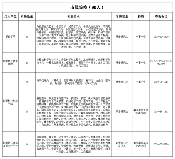 邯郸市2024年博硕人才岗位需求表