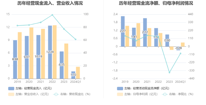 2024年第一季度,公司营业收入现金比为61.23%,净现比为-93.85%。