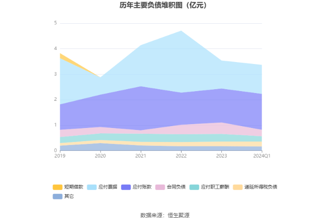 负债重大变化方面,截至2024年一季度末,公司合同负债较上年末减少44.19%,占公司总资产比重下降1.37个百分点;应付职工薪酬较上年末减少32.22%,占公司总资产比重下降0.68个百分点;应付账款较上年末增加6.55%,占公司总资产比重上升0.49个百分点;应付票据较上年末增加3.98%,占公司总资产比重上升0.21个百分点。