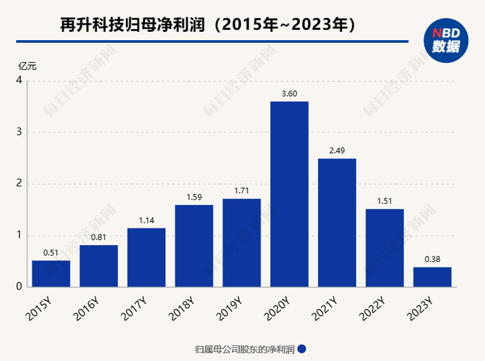 《每日经济新闻》记者注意到,再升科技归母净利润已连续下降三年,2023年的净利润数值为2015年以来最低点,且2023年降幅较2021年、2022年扩大。