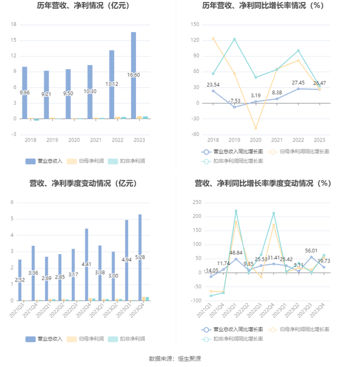 数据统计显示,中能电气近三年营业总收入复合增长率为20.44%,在输变电设备行业已披露2023年数据的25家公司中排名第10。近三年净利润复合年增长率为56.27%,排名4/25。