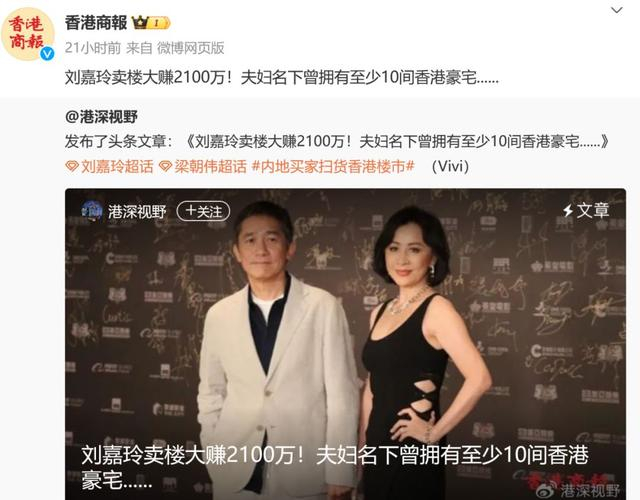 据香港商报报道,大额豪宅成交也转趋活跃,明星刘嘉玲出手卖房,狂赚2100万港元