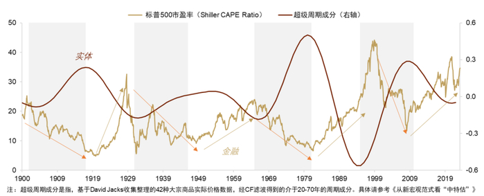 本轮宏观范式的转换与有望开启的新一轮实物资产超级周期形成共振。我们在《从新宏观范式看“中特估”》中指出,新范式下的逆全球化、产业链重构等长期因素,可能是大宗商品等实物资产中枢上行的重要推手。自1990年代中后期以来,全球化阶段中国逐渐成为“世界工厂”,增加了铜、油等原材料需求,叠加较紧的供给,推动了上一轮超级周期的上行阶段(1996-2010年)。站在当前时点,过去十余年金融化过程中对“老经济”投资不足带来的供给短缺,遇到了宏观范式转换带来的需求增加,可能加速新一轮超级周期的到来。