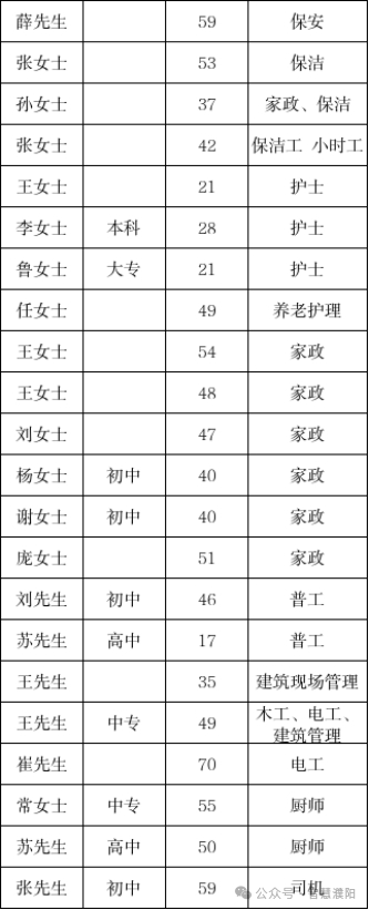 4月24日,濮阳市开州零工市场发布多个岗位,面向全社会招聘279人,并发布22名求职者的信息。