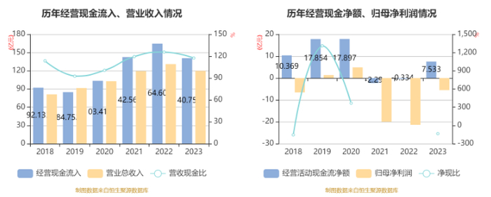 2023年,公司营业收入现金比为117.44%,净现比为-136.10%。