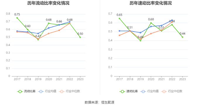 2023年,公司流动比率为0.50,速动比率为0.44。