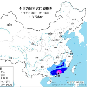 图1 全国强降雨落区预报图(4月25日08时-26日08时)