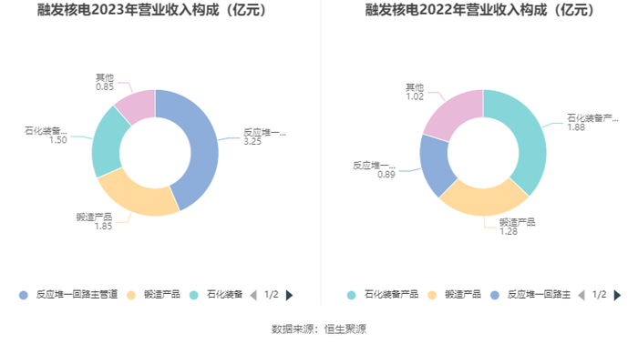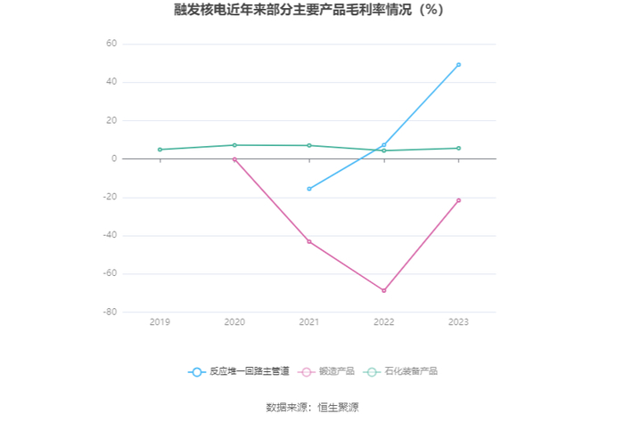 分产品看,反应堆一回路主管道、锻造产品、石化装备产品2023年毛利率分别为49.20%、-21.63%、5.62%。