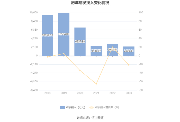 2023年全年,公司研发投入金额为2295.51万元,同比下降21.19%;研发投入占营业收入比例为3.08%,相比上年同期下降2.66个百分点。