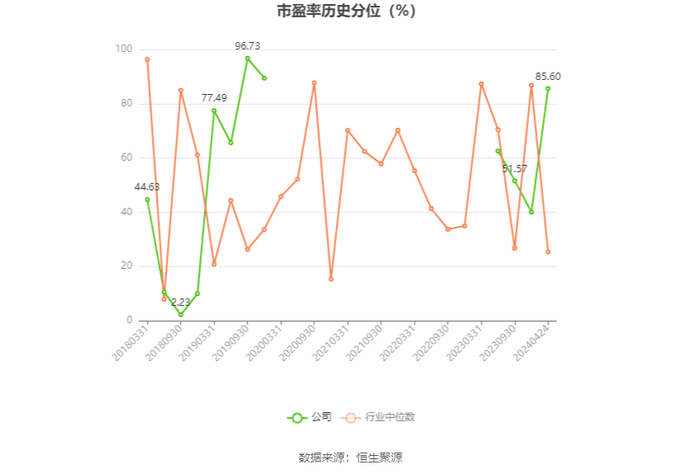 市盈率为负时,不显示当期分位数,会导致折线图中断。
