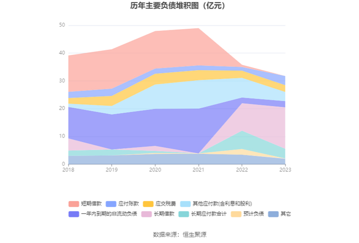 负债重大变化方面,截至2023年年末,公司长期借款较上年末增加51.06%,占公司总资产比重上升6.61个百分点;其他应付款(含利息和股利)较上年末减少54.14%,占公司总资产比重下降4.20个百分点;长期应付款合计较上年末减少47.68%,占公司总资产比重下降3.39个百分点;预计负债较上年末减少96.01%,占公司总资产比重下降2.27个百分点。