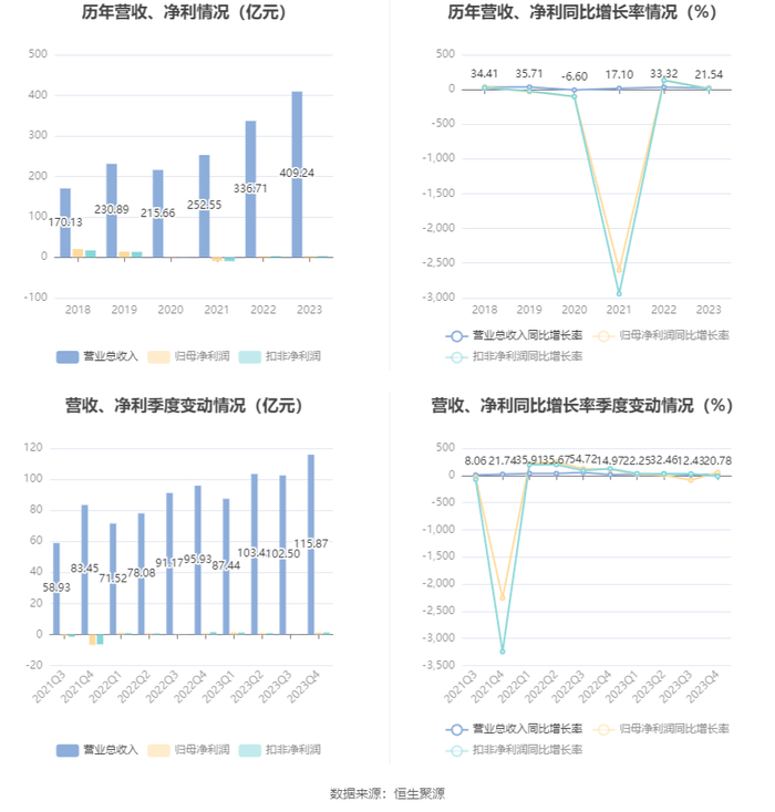 年报显示,2023年年末公司十大流通股东中,新进股东为高盛公司有限责任公司,取代了三季度末的上海高毅资产管理合伙企业(有限合伙)-高毅邻山1号远望基金。在具体持股比例上,香港中央结算有限公司持股有所下降。