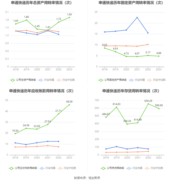 数据统计显示,申通快递近三年营业总收入复合增长率为23.80%,在物流行业已披露2023年数据的30家公司中排名第4。近三年净利润复合年增长率为110.88%,排名1/30。
