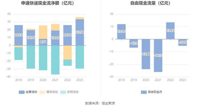 2023年,公司经营活动现金流净额为33.58亿元,同比增长29.14%;筹资活动现金流净额2.62亿元,同比增加20.50亿元;投资活动现金流净额-29.40亿元,上年同期为-7.96亿元。