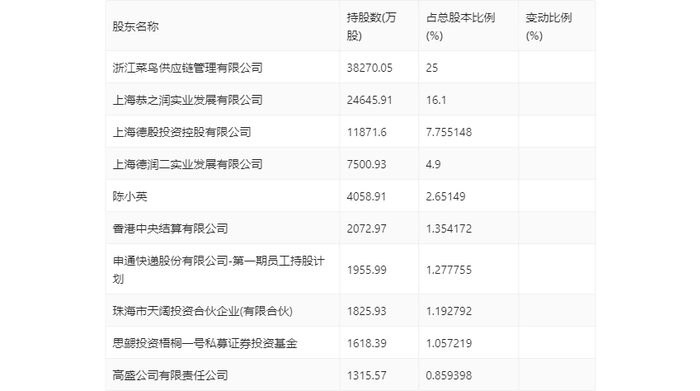 值得注意的是,根据年报数据,申通快递22.19%股份处于质押状态。其中,第二大股东上海恭之润实业发展有限公司质押2.46亿股公司股份,占其全部持股的100.00%。